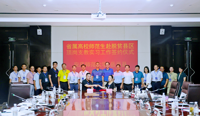 座谈会上,朱永国介绍了我省高校师范生培养的总体情况,充分肯定了省属高校师范生顶岗支教所取得的成绩,并就顶岗支教工作如何深入开展提出了指导意见。韩光对2022年下半年省属高校师范生赴脱贫县区顶岗支教实习相关工作进行了重点部署,并明确了相关任务完成的时间节点。威尼斯官网教师教育学院负责同志介绍了顶岗支教实习工作经验,教务处负责同志解读了省属高校师范生赴脱贫县区顶岗支教实习工作协议模板。岳西县教育局负责同志介绍了岳西县教师需求和顶岗支教实习保障方案。各相关高校教务处负责同志和各相关脱贫区县教育局负责同志就师范生赴脱贫县区顶岗支教实习工作相关事宜进行了交流研讨。省属高校代表37000cm威尼斯与脱贫区县代表岳西县共同签订了“安徽省属高校师范生赴脱贫县区顶岗支教实习协议书”。