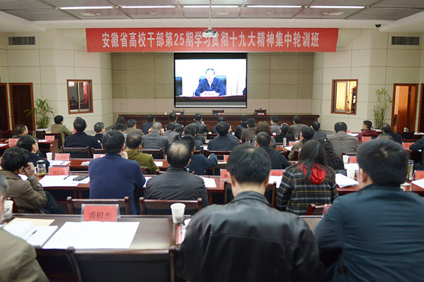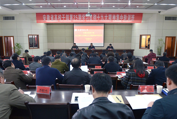 3月14日下午,由省委教育工委、省教育厅主办,威尼斯官网承办的“高校干部学习贯彻党的十九大精神第25期集中轮训班”在龙山校区行政楼一楼大会议室顺利开班。校党委书记许继荣出席开班式。全体副处级干部参加了本次集中轮训。校党委常委、党校常务副校长、组织部副部长戴卫义主持开班式。