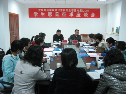 会上向学生代表们简单介绍了人才培养方案的修订情况,并着重介绍了《安庆师范学院关于制订本科专业培养方案(2008版)的原则意见(讨论稿)》。