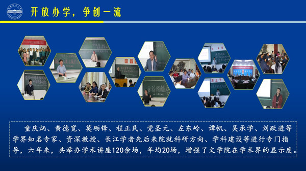 内涵建设绝非一朝一夕之功,面临诸多困难和挑战。在推进内涵式发展的实践探索中,文学院全体师生有攻坚克难的决心和勇气,有破解难题的毅力和行动,有实现梦想的抱负和信心。这份信心来自我们对学校、对事业、对信念的坚守与执着。以梦为马,路在脚下,文学院全体师生将秉持优良传统,砥砺奋进,做好特色文章,争创一流学科,坚定不移地向学校新一轮博士点申报及“双一流”建设宏伟目标奋勇前进!(黄晶晶 叶当前)