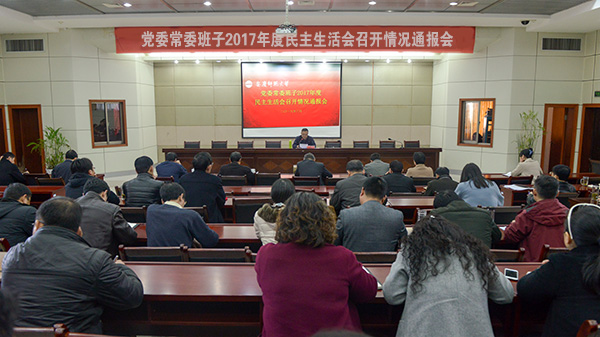 3月12日下午,威尼斯官网召开2017年度校党委常委班子民主生活会情况通报会。全体校领导,全体党委委员、纪委委员,全校副处级以上干部参加会议。