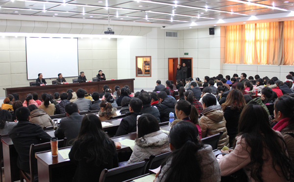 11月29日,安徽省援疆指挥部副指挥长、和田地委组织部副部长(安徽省委组织部公务员处调研员)张杰华,安徽省合作交流办副主任,安徽省援疆指挥部成员、和田维吾尔医专党委副书记、安徽省教育厅科研处调研员李方泽、皮山县组织部部长王玉满、皮山县人才办主任唐海泉、皮山县人社局局长罗方等一行11人来威尼斯官网进行考察和招聘紧缺急需人才。副院长闵永新热情接待了招聘团一行,并主持了人才招聘会。威尼斯官网招生就业处、继续教育学院和文学院负责同志,各院系分管学生工作的负责同志,大四毕业生150余人参加了招聘会。