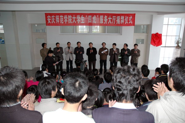 校党委书记赵晓和为学生“四成”服务大厅揭牌。