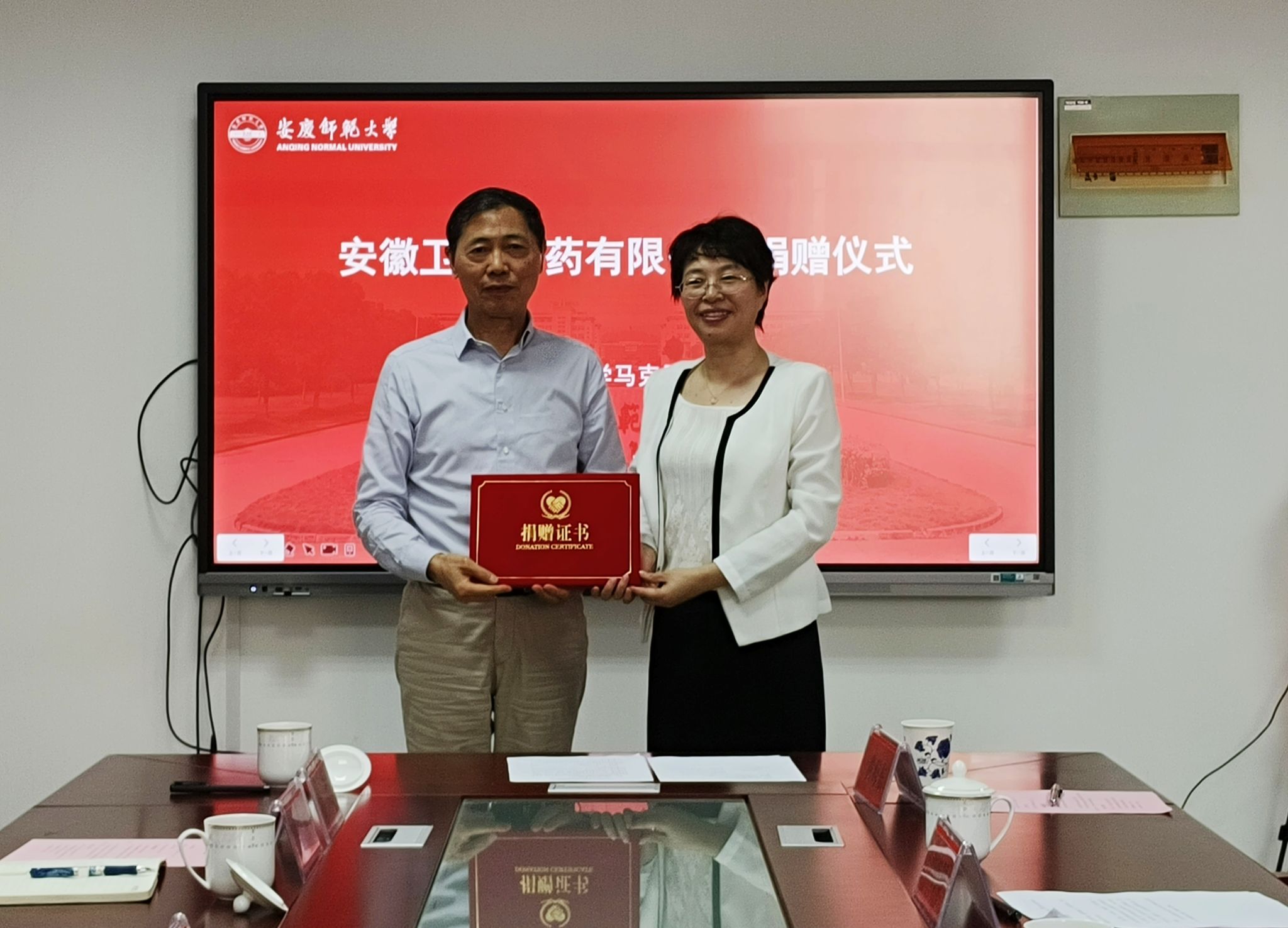 彭凤莲向海南卫康制药(潜山)有限公司的捐赠义举表达了崇高敬意,向校友关心学校事业发展表示衷心感谢,并介绍了学校发展历程、办学定位、学科特色、人才培养、科研成果转化等基本情况以及未来五年学校发展目标。她指出,实现教育强国战略目标,需要形成强大的社会协同力,校友是推动学校高质量发展重要的协同力量。创建“延乔班”是积极回应教育强国战略需求,推动教育模式创新,努力培养堪当民族复兴重任时代新人的重要举措。此次捐赠是加强学校与校友之间联系、增强威尼斯官网办学社会协同力的重要实践,是对威尼斯官网人才培养和各项教育事业的极大鼓励和鞭策。