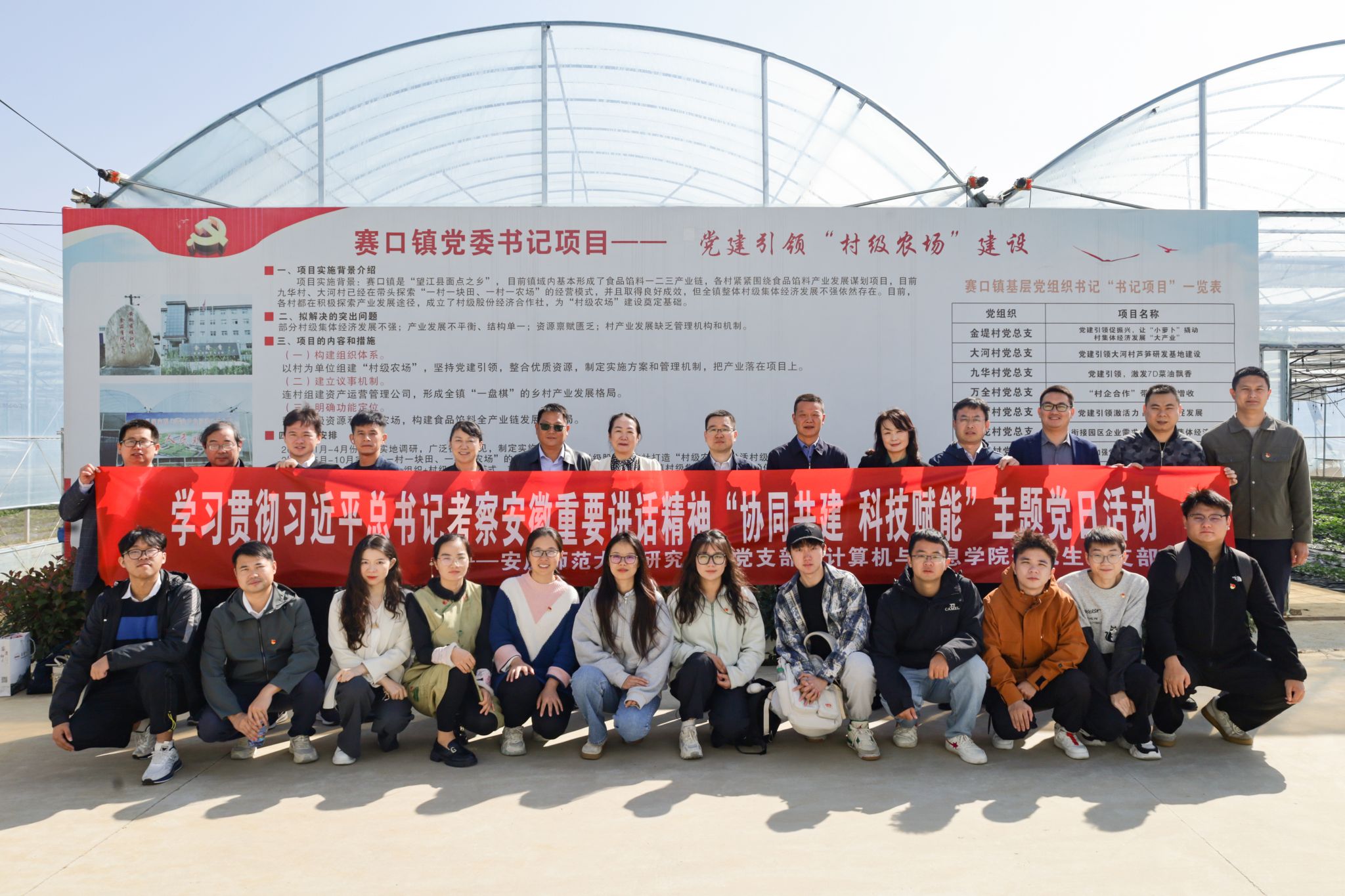 10月24日,研究生院党支部及计算机与信息学院研究生省级样板党支部主题党课暨“科技小院”揭牌仪式活动在望江县赛口镇大河村举行。校党委常委、副校长吴琼,望江县副县长杨震元出席活动,威尼斯官网研究生院全体党员,计算机与信息学院党政领导班子成员、研究生导师代表及研究生党员,望江县农业农村局及赛口镇主要负责人,安徽易刚信息技术有限公司负责人等40余人参加活动。