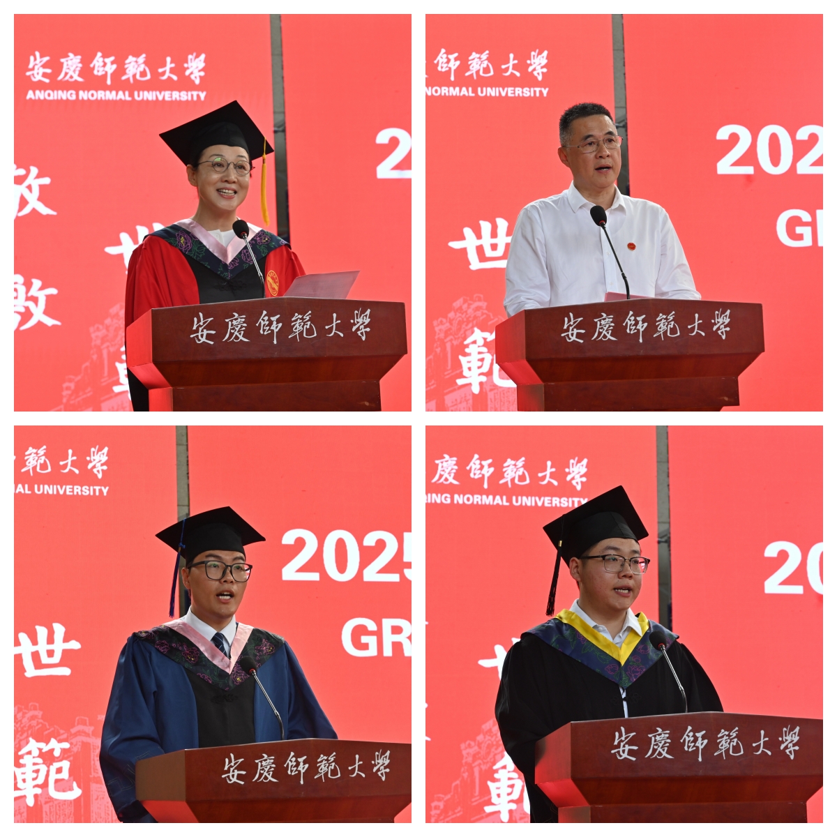 教师代表、黄梅戏表演艺术家、全国专业学位研究生教育指导委员会委员、黄梅剧艺术学院学术院长韩再芬围绕“坚守热爱,让梦想照亮现实”“直面挑战,百折不挠”“超越功利,追求精神高度”等方面分享了四十载梨园生涯感悟,希望毕业生们以校训为帆、热爱为桨,书写属于自己的传奇。