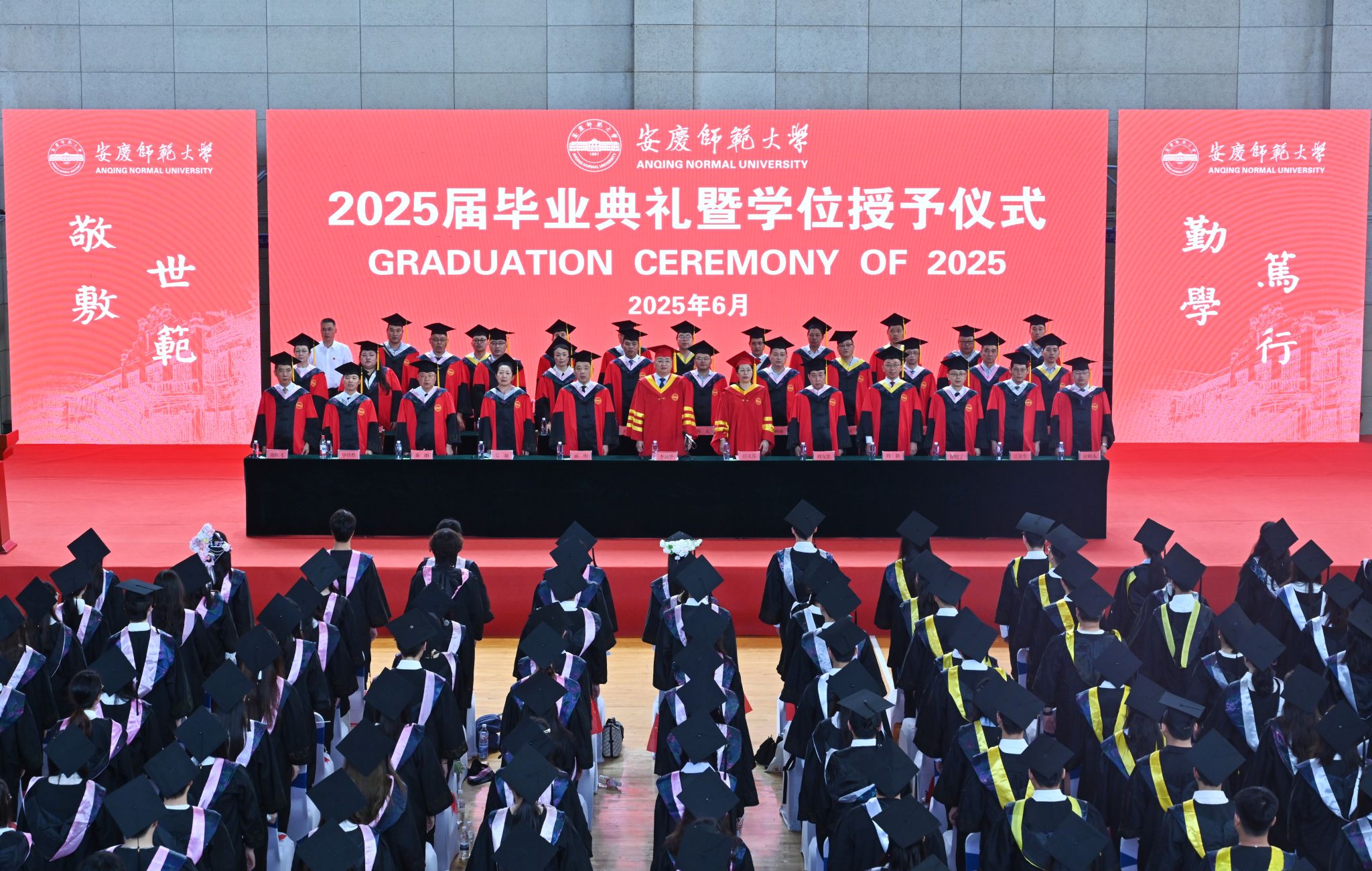 6月20日,学校举行2025届毕业典礼暨学位授予仪式。学校党政领导李福华、彭凤莲、崔明、刘友忠、吴琼、肖新、秦朗、徐晓宁、申传胜、张红飞、计裕人,专升本联合培养单位、桐城师范高等专科学校校长江贵生,学校学位评定委员会成员、各部门负责人、各学院党政班子成员、2025届毕业班辅导员、教师代表、校友代表、学生家长代表及全体毕业生参加典礼,共同见证这一美好时刻。典礼由校党委书记李福华主持。