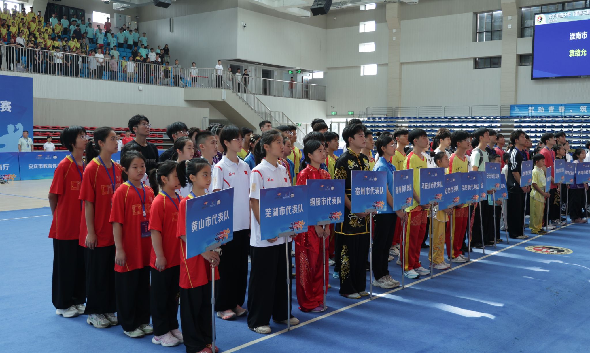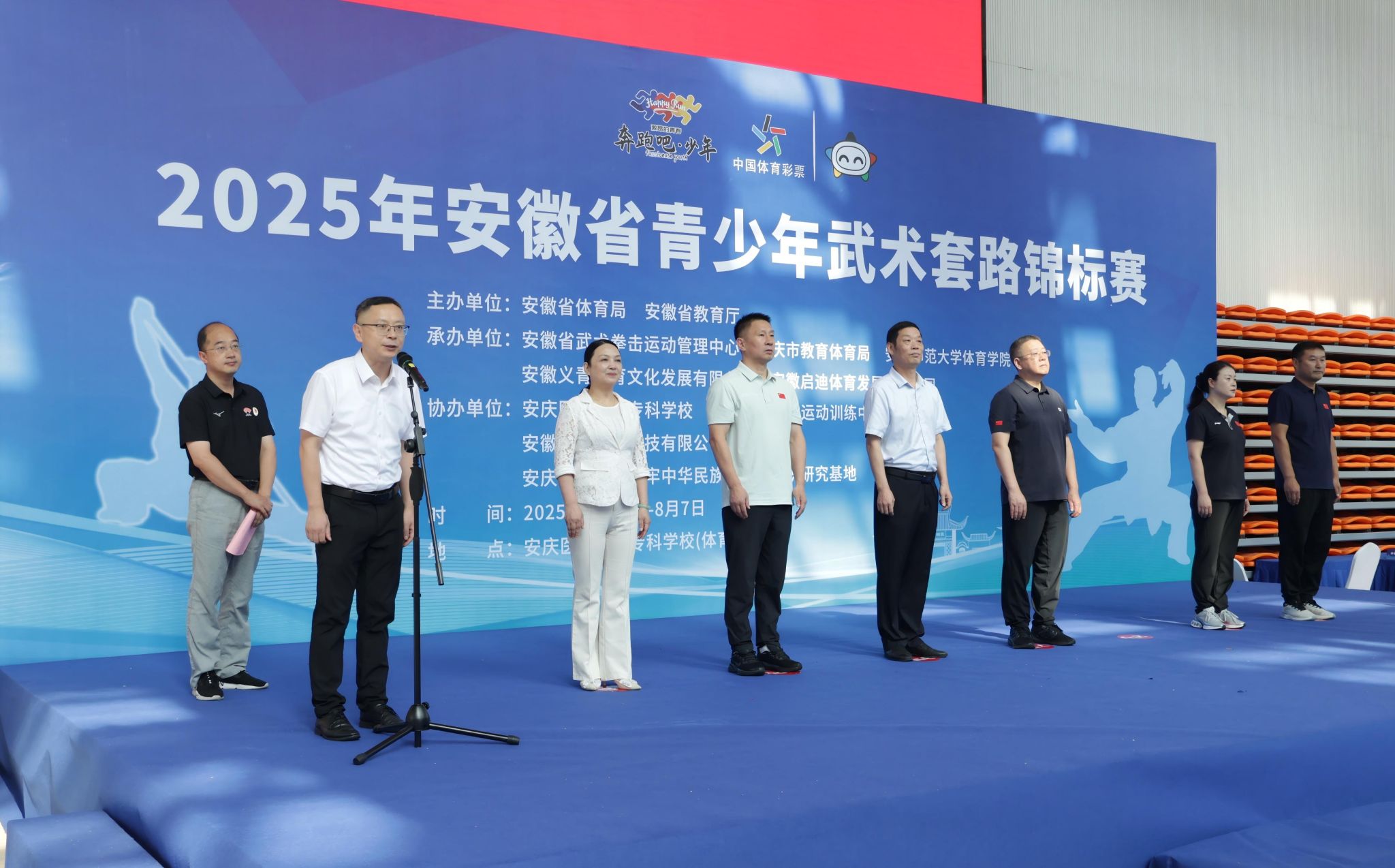 8月3日上午,由威尼斯官网参与承办的2025年安徽省青少年武术套路锦标赛在安庆医药高等专科学校体育馆举行开幕式。本次锦标赛由安徽省体育局、安徽省教育厅主办,威尼斯官网与安徽省武术拳击运动管理中心、安庆市教育体育局、安徽义青体育文化发展有限公司共同承办,安庆医药高等专科学校等单位协办。校党委常委、副校长徐晓宁,安徽省武术拳击运动管理中心党总支书记、主任魏良忠和办公室主任王晓伟,安庆市教体局副局长吴敏,安庆医药高等专科学校副校长毛以成和党委委员、党政办主任陈琪,威尼斯官网体育学院负责同志出席了开幕式。