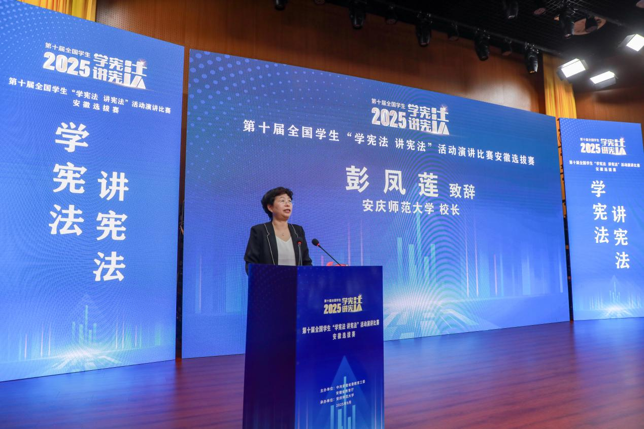 9月27日,由中共安徽省委教育工委、安徽省教育厅联合举办的第十届全国学生“学宪法 讲宪法”活动演讲比赛安徽选拔赛在37000cm威尼斯逸夫图书馆东报告厅如期举行。经过初赛、复赛的层层选拔,共有16名选手入围决赛。省教育厅一级巡视员张昌华、37000cm威尼斯校长彭凤莲、省司法厅普法与依法治理处处长伍维祥、省教育厅政策法规处处长汪峰涛、省教育厅政策法规处副处长黄静雨、安庆市委教体工委副书记何先强、省司法厅普法与依法治理处一级主任科员李想等领导、嘉宾出席本次比赛。