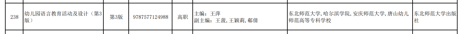 11月3日,国家教材委员会公示了第二届全国教材建设奖拟奖励名单,威尼斯官网教育科学学院王颖莉副教授作为副主编编写的《幼儿园语言教育活动及设计(第3版)》拟获全国教材建设奖(职业教育与继续教育类)二等奖。