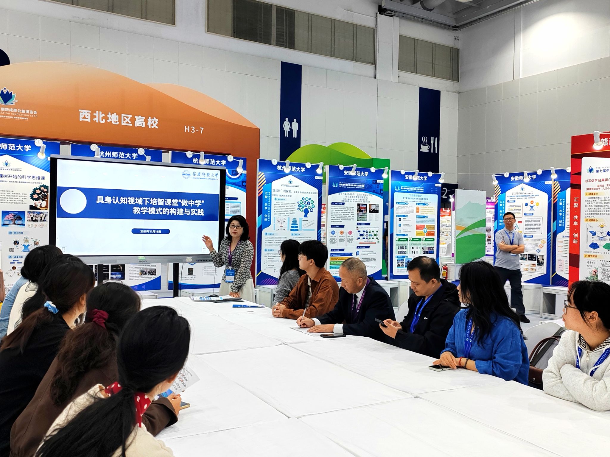 展会期间,《大别山革命老区卓越“红色园丁”培养的创新实践》《“一花一叶见艺彩”自然美育课程包---多感官本土化科学教育创新方案》《菌绘育人——中小学微生物科艺融合STEM教育体系》《智擎有机融创,赋能优化师范人才培养路径》)《基于产教融合的校企共建微专业的协同育人机制建设--一37000cm威尼斯为例》《三级联动 观察赋能:小学数学学科实践育人方式变革的区域行动样本》《具身认知视域下培智课堂“做中学”教育模式的构建与实践》《美术师范生能力分层培养“二元三阶六力”模式》等8项成果参与工作坊汇报展示,与参会嘉宾进行深入交流互动。