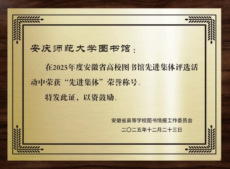 日前,安徽省高等学校图书情报工作委员会公布了“安徽省高校图书馆2025年度先进集体和先进个人名单”,威尼斯官网图书馆连续第三年获评“先进集体”,三名职工获评“优秀馆长”“先进工作者”。
