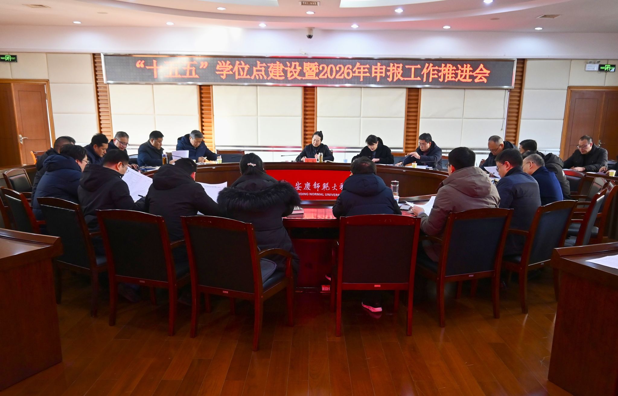 吴琼在讲话中传达了2026年全国教育工作会议精神。她指出,2026年是“十五五”规划开局之年,也是教育强国建设三年行动计划承上启下的关键之年。全国教育工作会议对高等教育提出明确要求,强调要“适应国家和区域重大战略需求,持续优化结构布局,分类推进改革,引导高校科学定位、特色发展”。她强调,学校专题研究部署学位点建设工作,是深入贯彻落实国家教育战略部署、主动将学校发展融入教育强国建设全局的重要举措。结合国家要求与学校实际,吴琼就高质量、有组织地推进硕士学位点申报与建设工作提出要求,坚持战略引领,强化顶层设计。各单位必须提高站位,将学位点布局与建设置于服务安徽省“三地一区”建设、安庆区域产业创新升级的大局中进行系统谋划与科学论证,确保学科发展方向紧密对接国家急需和区域发展,做到“有为有位”。聚焦交叉融合,凝练特色优势。要走特色化、差异化发展道路,主动打破传统学科壁垒,有组织地推动学科交叉融合,系统整合校内外部优质资源,在人工智能、集成电路、国家安全等新兴交叉领域以及区域发展关键领域培育新的学科增长点,形成鲜明特色。健全保障机制,夯实质量闭环。牢固树立“全周期管理、质量为本”的理念,有组织地完善从规划论证、申报建设到监测评估的全链条质量保障体系。强化职能部门与学院协同联动,加强过程管理与资源精准配置,确保各项建设任务高标准落地见效,持续提升学位点内涵建设水平与可持续发展能力。加强动态调整,优化布局结构。要增强学位点建设的主动性和适应性,建立健全动态调整机制。对需求旺盛、发展态势良好的学位点加大支持力度;对建设成效不足、与社会需求脱节的学位点,要及时预警并实施调整优化甚至有序退出,确保学位点布局始终与国家和区域发展需求同频共振。