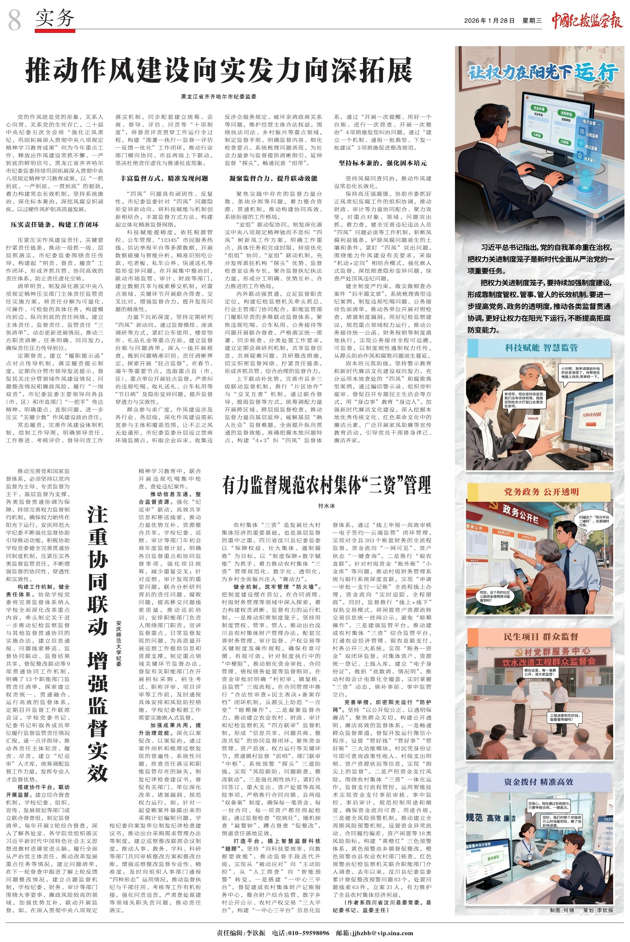 1月28日,《中国纪检监察报》在实务板块以《注重协同联动 增强监督实效》为题,专题报道学校纪委在推动各类监督贯通方面的实践。