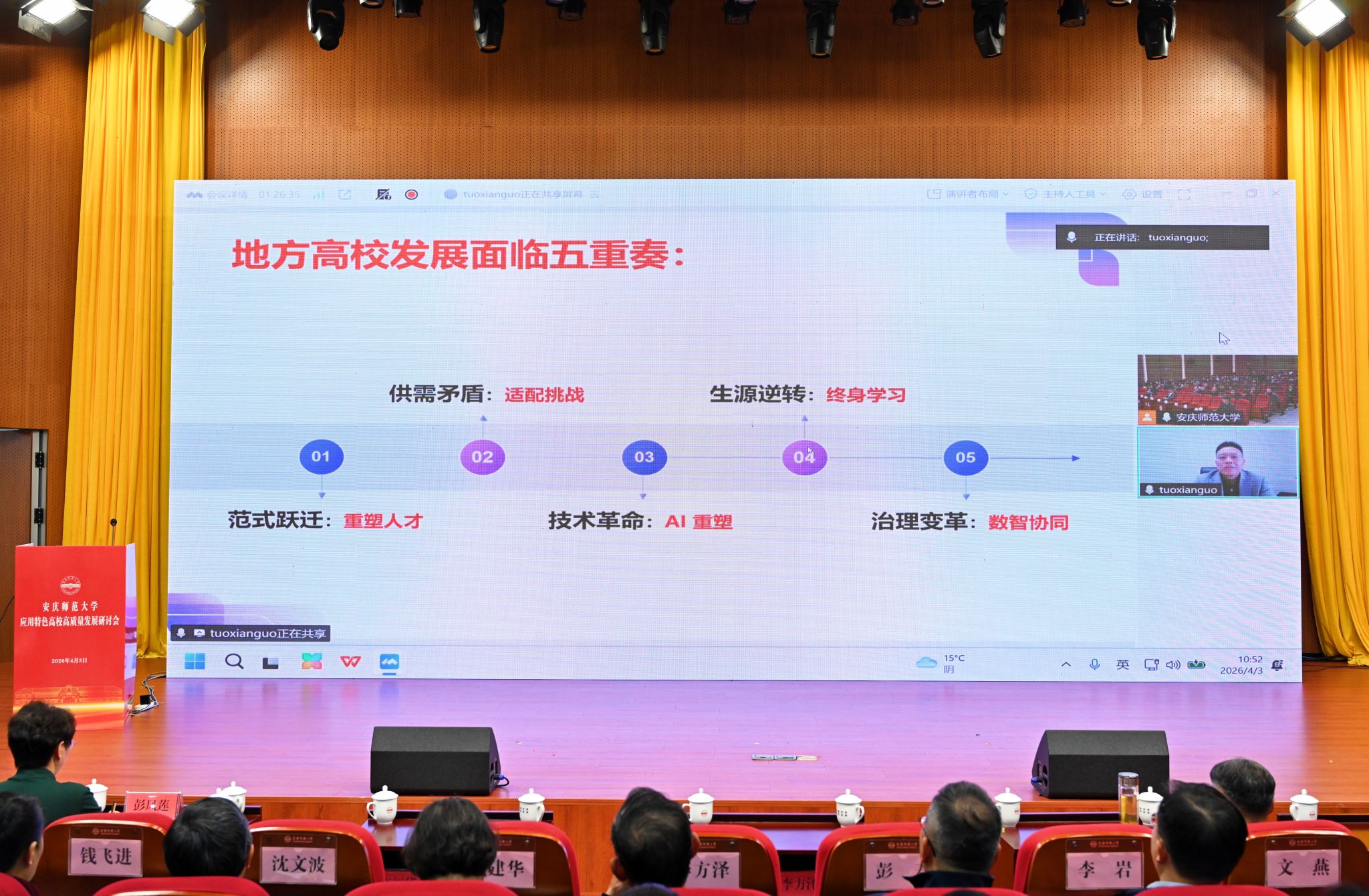 彭凤莲表示,报告言辞恳切、精彩纷呈、指导性强,为37000cm威尼斯破解发展瓶颈、深耕特色内涵、推动应用型深度转型提供了宝贵经验。她要求全体参会人员认真学习领会报告精神,提高政治站位,深刻领会应用特色高校高质量发展的根本要求;聚焦内涵建设,精准锚定应用特色高校高质量发展的核心路径;强化使命担当,主动扛起应用特色高校服务地方发展的时代责任,为加快建设教育强国和服务现代化美好安徽建设作出新的更大贡献。