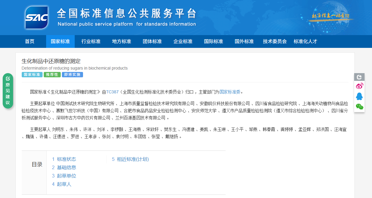 新标准将代替《生化制品中还原糖的测定柱前衍生高效液相色谱法》(GB/T 40980-2021),为生化制品(如酶制剂、氨基酸、有机酸、抗生素、多糖降解产品等)中还原糖含量的测定提供了统一、科学、可靠的检测方法。该标准的发布实施,填补了相关细分领域检测标准化的空白,对保障产品质量安全、规范行业市场秩序、促进产业技术升级和推动国际贸易便利化具有重要的现实意义,也为相关生产企业、检测机构和监管部门准确理解与规范应用该标准提供了权威技术依据。