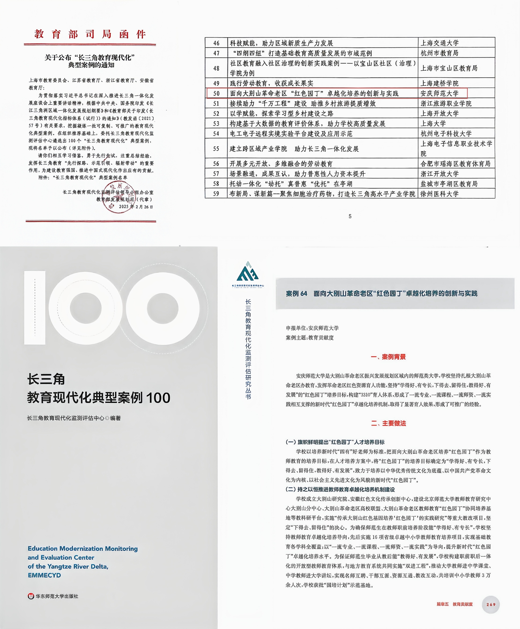 此次入选典型案例是教育部及长三角地区对学校长期坚守师范教育初心、创新教师培养模式、积极服务地方发展成效的高度认可。学校将以此为契机,进一步深化“红色园丁”培养内涵,完善卓越教师教育体系,加强区域协同与成果推广,探索具有中国特色的高水平教师教育路径、助推教育现代化与高质量发展。(撰稿:黄晓波 编辑:范龙超 审核:连飞 潘锦云 赵丽丽)
