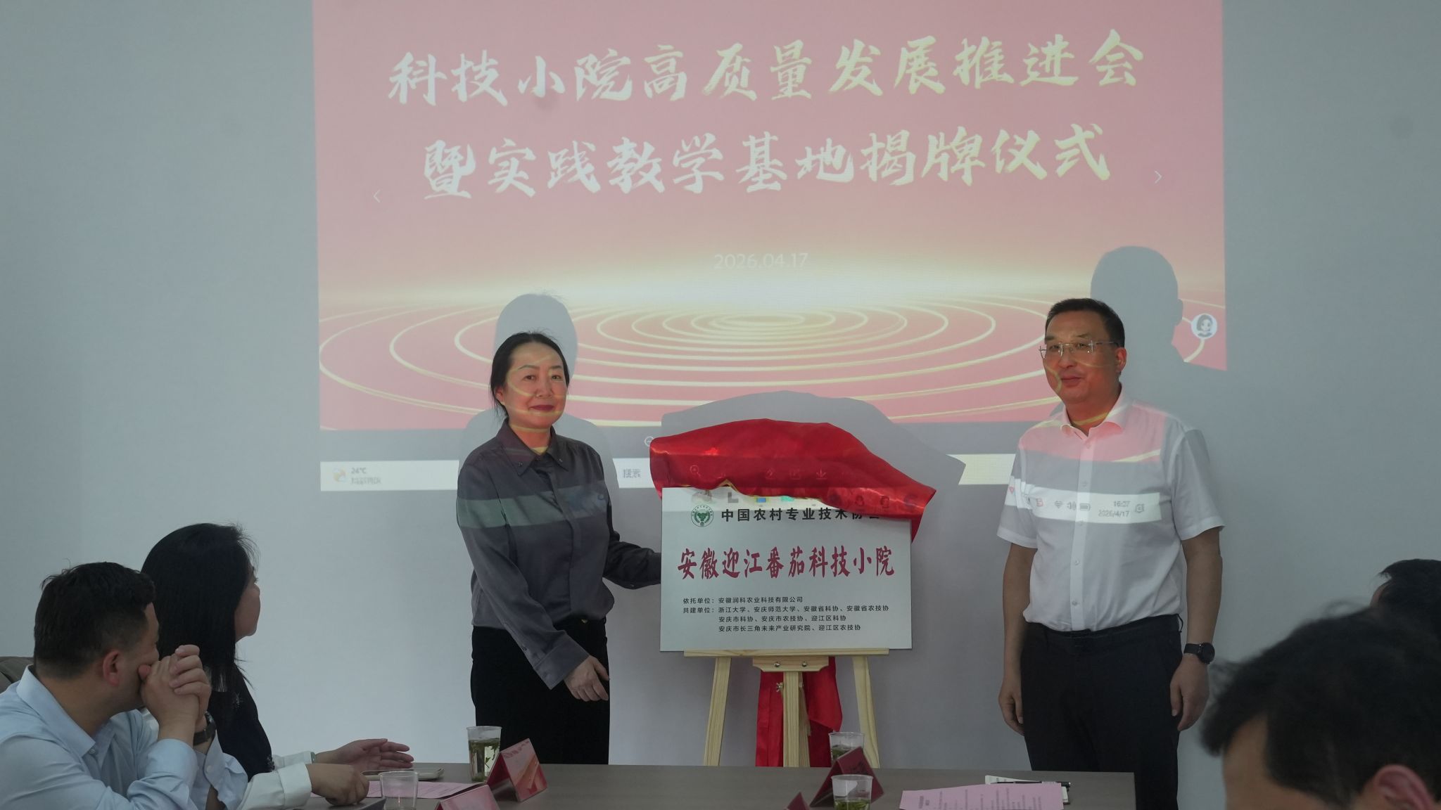 4月17日,学校科技小院高质量发展推进会暨实践教学基地与国家级科技小院揭牌仪式在安徽润科农业科技有限公司举行。校党委常委、副校长吴琼出席活动。安庆市科学技术协会、迎江区科学技术协会、安徽润科农业科技有限公司,学校研究生院、生命科学与食品工程学院、人工智能与计算机学院、黄梅剧艺术学院、经济与管理学院等单位负责人、科技小院代表参加活动。
