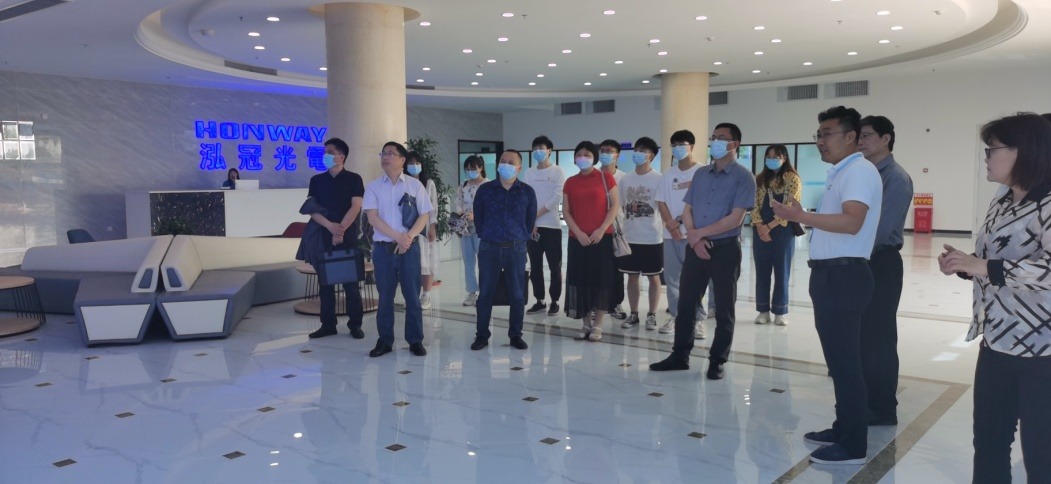 5月24日,电子工程与智能制造学院党政班子成员夏云高、董甲东、关德军、江善和、查长礼及部分党外人士教师代表赴太湖县安徽泓冠光电科技有限公司,就人才需求、项目合作及科技创新等工作开展专题调研。太湖县经开区招商局局长詹诗琼陪同调研。