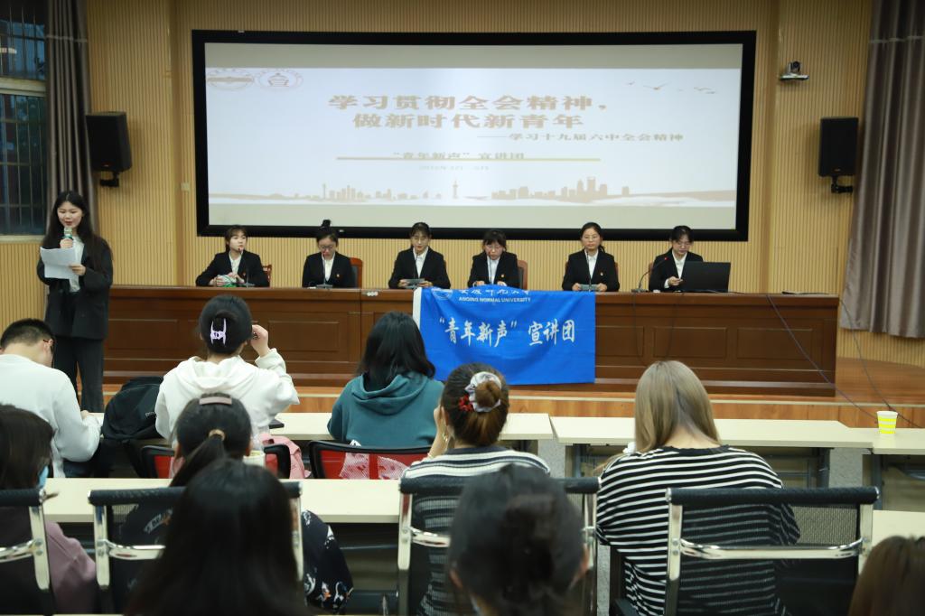4月4日,“青年新声‘学四史’”宣讲团应邀在美术学院学术报告厅开展“学习贯彻全会精神,做新时代新青年”主题党史宣讲活动,学院200余名同学到场聆听。