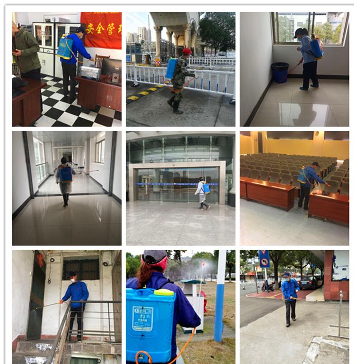 疫情防疫期间,校园内不经意间都可以看到一个个身穿白色衣服,背负着数十斤消毒桶,手提着花洒喷头的消毒员忙碌的身影,他们不辞辛劳的劳作,守护着校园一方平安。(桂新胜)