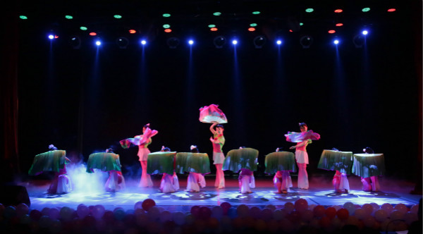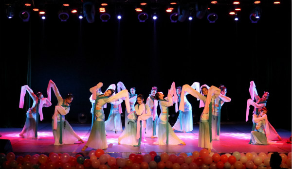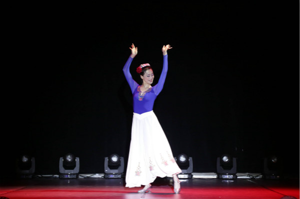 对于舞蹈表演专业来说,民族舞是最能体现舞蹈功底的舞种。张子桐、于梦雅等表演的《傣家的女儿傣家的雨》、伍月、许梦楠表演的哈萨克舞《鲜花》、王思雨表演的佤族舞蹈《佤哈》以及舞蹈表演专业老师袁帆表演的维吾尔族舞蹈,将演出推向高潮。袁帆身着维吾尔族长裙,只见她在台上优雅地舞蹈,手指优美地变换,给台下观众们带来了不一样的异域风情。