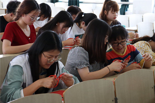 在曹英杰手把手的精心指导下,一片片红纸经过折叠、修剪、加工,形成了红星、党徽、振风塔等精美的图案,用以描绘中国共产党100年艰难曲折和辉煌成果,引导学生们增强对百年党史的认知,表达对党的感恩情怀。