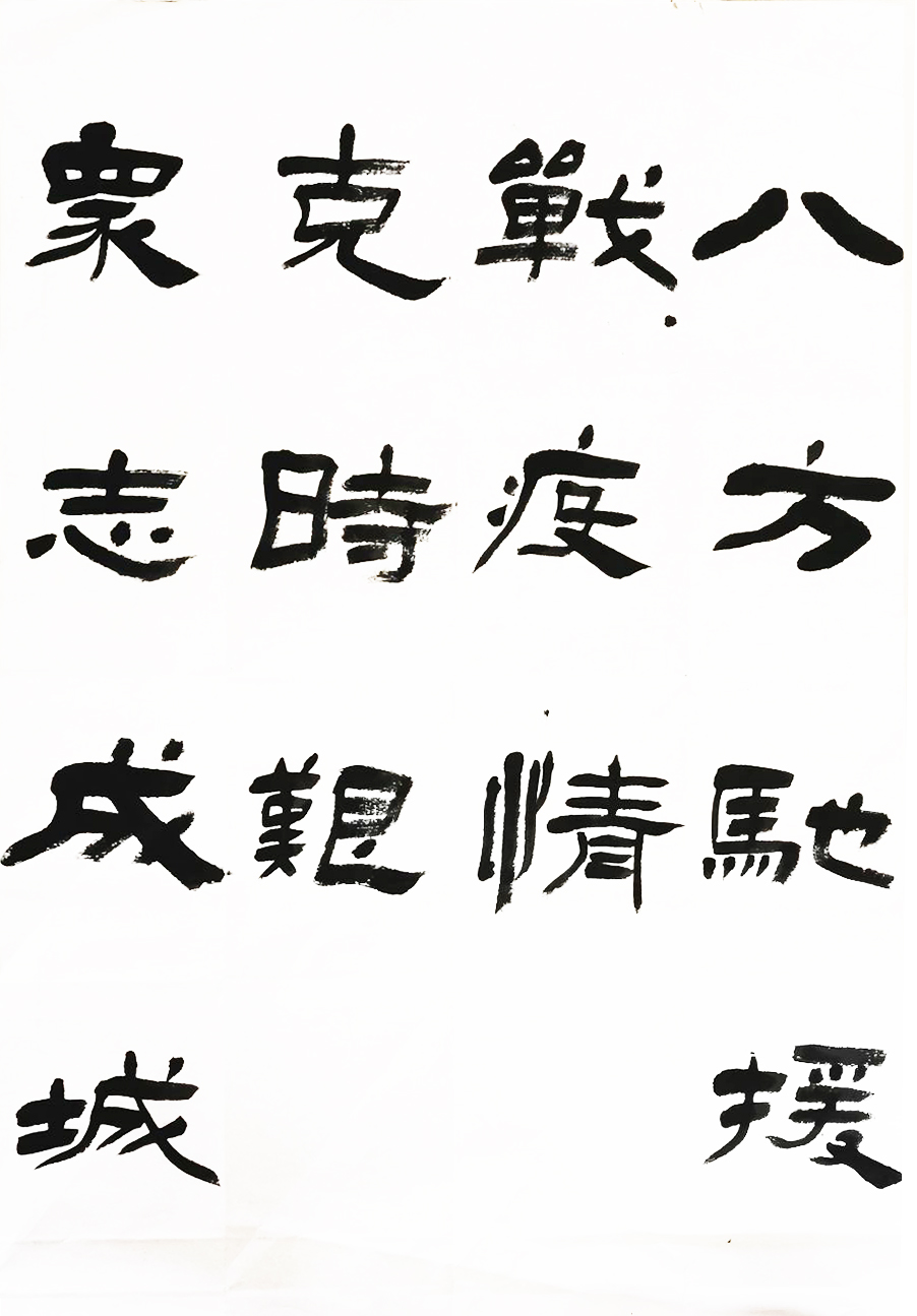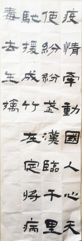 “八方驰援战疫情,众志成城克时艰”是邓石如书法班负责人舒海冉创作的一幅书法作品,“在写下这些字的时候,我想到了这些日子的疫情消息,心情很沉重,希望能通过自己的一份力量传递精神支持。”在他的倡议下,书法班其他学员也纷纷写写了祝福,很快创作了17幅书法作品。