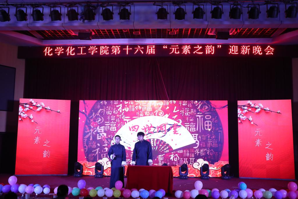 动感十足的爵士舞蹈、悠扬动听的流行音乐、令人捧腹大笑的小品……12月22日晚,化学化工学院第十六届“元素之韵”迎新晚会在图书馆报告厅东厅落幕,化学化工学院党政领导、各科室主要负责人及全体辅导员老师、同学们,共计400多位观众共同观看了本场晚会。