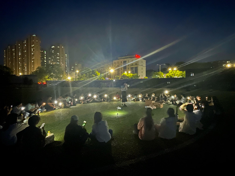 在团建的尾声,全班学生合唱《后来》将整个活动推向高潮,动听的歌声在夜空中久久回荡。“疫情封校期间,心情还是比较沉闷的,这个活动开展得很及时,缓解了疫情带来的紧张情绪”学生史欣瑶坦言,大家在操场上围坐在一起,有家的感觉,让自己感觉很温暖。