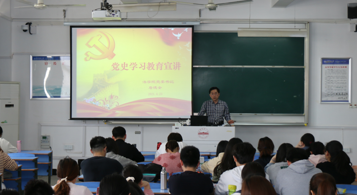 值此建党100周年到来之际,4月23日下午,法学院党委书记詹德全在学院部分党员、发展对象、入党积极分子中举办了一次题为“讲党史、知党情、感党恩”党史宣讲报告会。