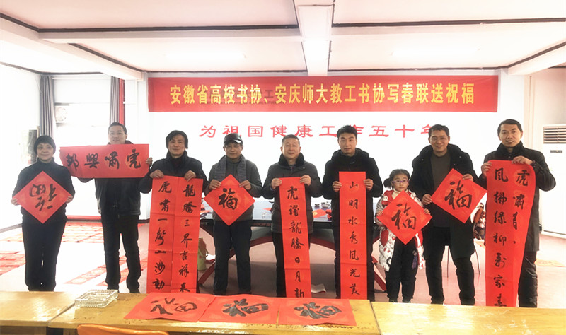 1月13日,校工会主办、省高校书协安庆师大教工书协开展2021年“写春联,送祝福”活动。安庆市和威尼斯官网书法家应邀到场为威尼斯官网教职工挥毫书写春联,送上了美好的新年祝福。