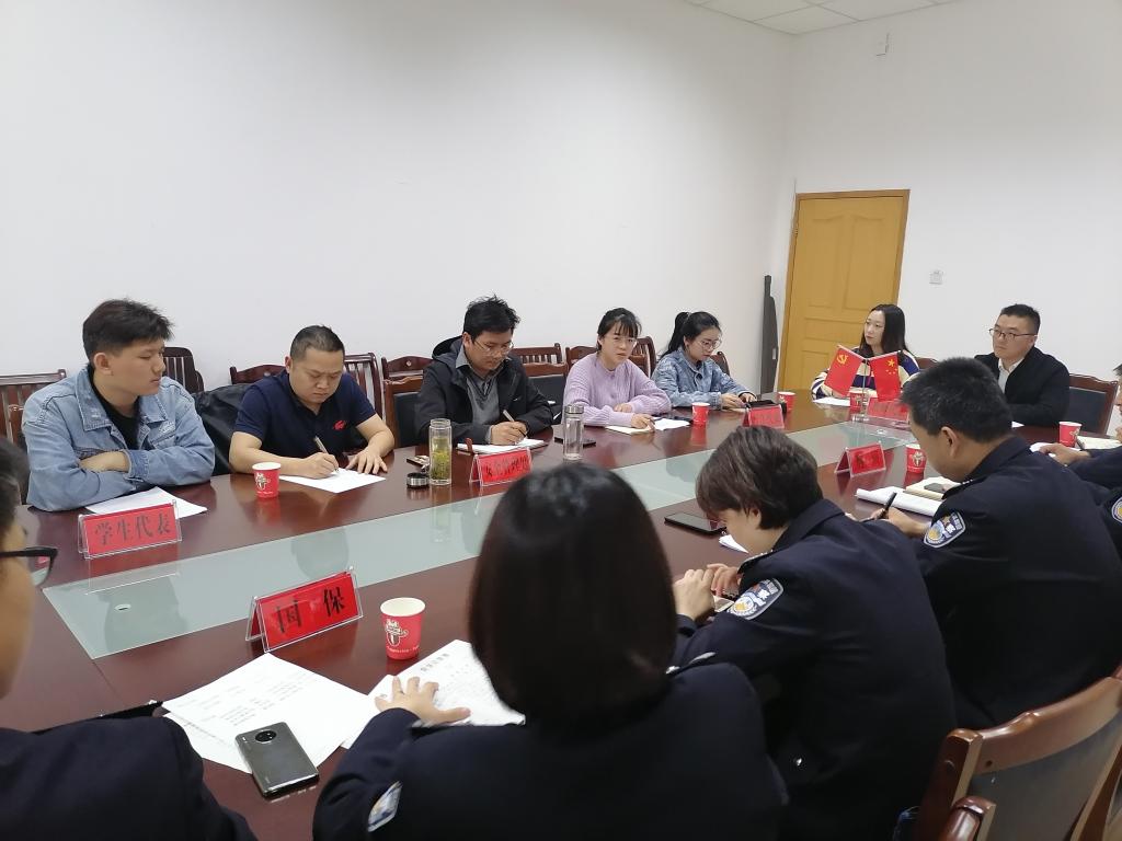 安全管理处负责人从学校特殊的地理位置、人员构成、校园及周边环境等分析了学校安全管理工作特点,同时,对属地公安机关长期以来为学校平安校园建设所做出的工作表示感谢。宜秀分局副局长简要介绍了宜秀分局在校园安保及周边治安整治工作部署情况,强调了“警校联动”工作重要性。会上,参会人员围绕智慧校园安防建设、校园及周边安全整治、网络舆情管控、防电诈、防“校园贷“、流浪动物治理、法制宣传进校园等方面进行了深入交流。