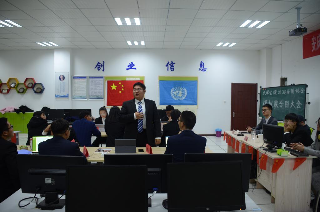 11月30日,由大学生模拟联合国协会主办的2019年第一次模拟联合国大会在大学生活动中心举行,此次活动的主题是“紧跟时代步伐,争做风气青年”, 20余名社团成员参加了大会。