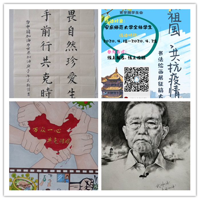 用画笔记录抗击疫情中的动人画面,用笔墨书写对抗疫人员的崇高敬意。4月18日至4月28日,大学生书画协会举办“祈福祖国,共抗疫情”书画征稿大赛,活动共收到78件作品。