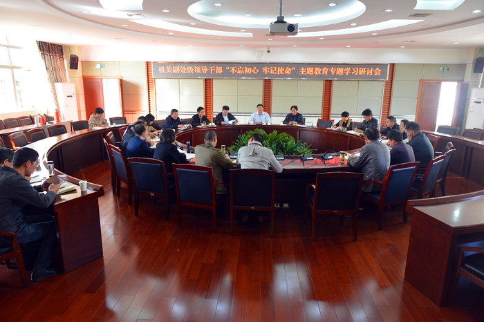 10月31日上午,机关党委“不忘初心、牢记使命”主题教育专题学习研讨会在行政楼二楼会议室召开。机关党委委员、机关全体副处级领导干部25人参加了会议。