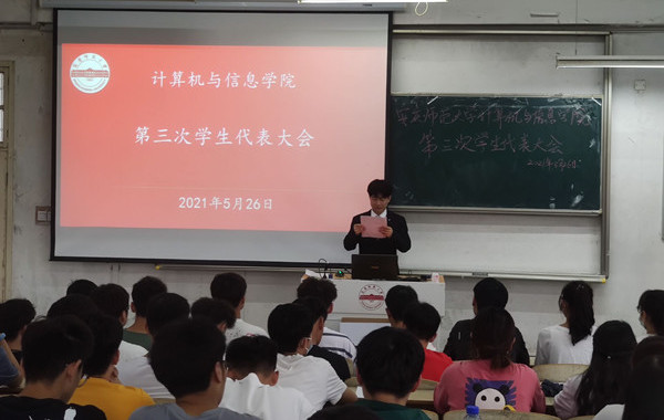 新一届学生会主席团候选人赵明康做了《计算机与信息学院第三次学生代表大会提案工作报告》,宣读了同学们对于课堂教学、学生管理、宿舍管理、食堂就餐、校园文化建设等方面提出的意见或建议。