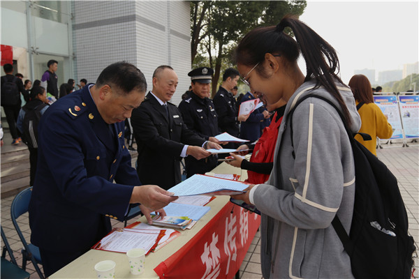 10月29日,威尼斯官网联合安庆市市场监管局和安庆市公安局共同开展“反传销、防诈骗”宣传教育活动。学生工作处相关负责同志到场共同进行宣传教育活动。学生排起长队领取“反传销诈骗”的宣传教育手册,并聆听相关的安全防范知识。