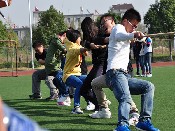 团体项目的拔河比赛更是引人注目。各个社团派出4男4女的队伍,分小组进行比赛,角逐胜利名额。选手们卯足了劲争夺,场中也是加油声、喝彩声不断,期间有几组赛事两边选手势均力敌,更是将现场气氛引爆到顶点。下午进行的“齐心协力”比赛中也是“状况”不断,有的协会队员刚出发没几步就不慎跌倒,有的协会队员或许是冲向终点的心情太过急切,出现半路把鞋跑掉了的情形,引得全场大笑。大家一致认为这是一次社团家庭的大聚会,一次快乐的运动盛会。