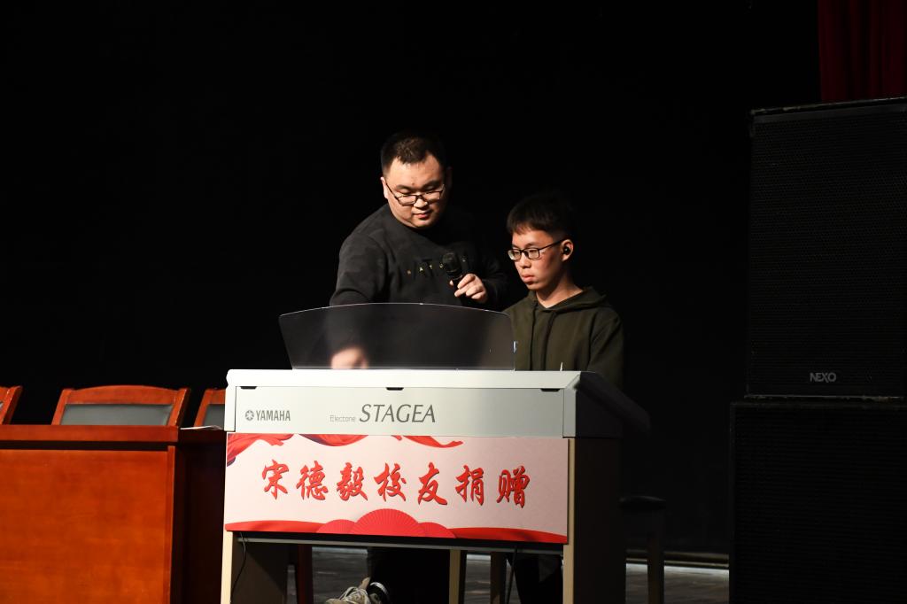 宋德毅说,自己毕业后选择自主创业,是母校的栽培让他经受住了种种挫折。“一直想为母校做点贡献,所以赠送了这两台双排键,希望能为学院发展、学校建设尽一点绵薄之力。”他介绍,双排键是为声音音色而演奏的乐器,能帮助学生熟知各种乐器的音色、用法,提高音乐素养。