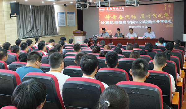 9月15日,计算机与信息学院举办了线上QQ直播和线下会议同步进行的新生开学典礼暨新生入学教育专题讲座。典礼在激昂的国歌奏唱乐曲声中拉开帷幕,会上,院长王一宾代表学院领导班子致辞,他对同学们的到来表示了热烈欢迎,并对同学们提出希望:志存高远,坚定信念,规划好自己的人生目标;转变思想,快速适应,培养好独立生活的能力;珍惜时间,努力拼搏,提升好自身的能力素质;团建奋进,互帮互助,营造愉快的校园氛围。随后,教师代表吴海峰副教授对同学们的学习生活提出来具体的建议,老生代表王鹏林及新生代表汪家珞相继发言。