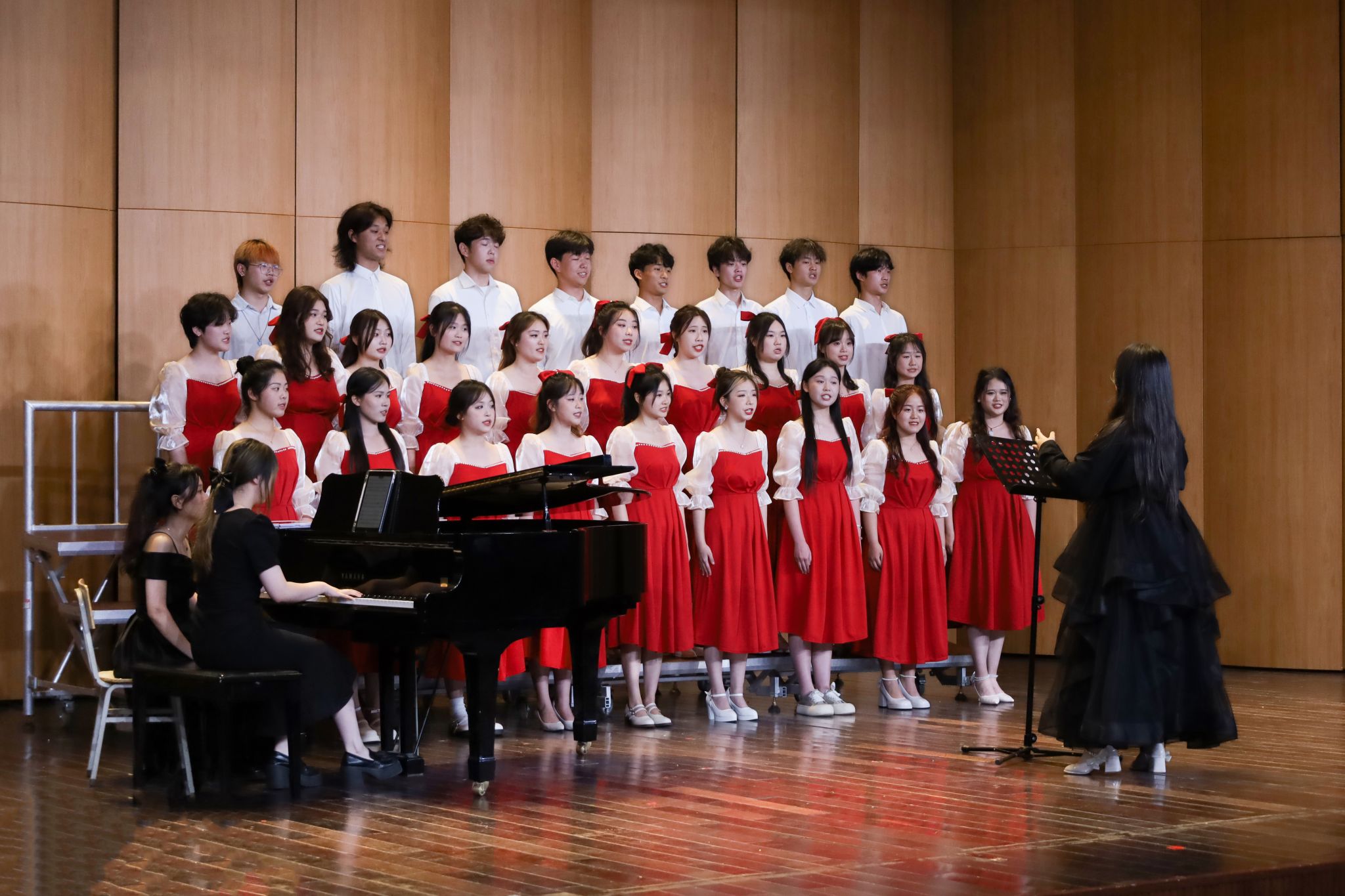 本次比赛由必选曲目和自选曲目两部分组成,各组选手通过指挥、伴奏、演唱的形式进行演出。《我和我的祖国》饱含深情,令人为之动容;《让我们荡起双桨》欢快活泼,展现青春力量……15个班级的节目各有不同各具亮点,收获在场观众的阵阵掌声。