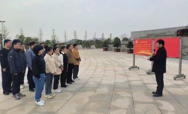 在安庆市烈士陵园主题雕塑前,全体党员面向党旗,举起右手,重温入党时在党旗下庄严许下的诺言,不忘初心,砥砺前行。重温入党誓词后,党委副书记刘燕杰作了主题宣讲。他指出,在革命战争年代和各个历史时期,无数的优秀儿女为了革命事业和祖国建设,献出了宝贵的生命,他们的英雄事迹、革命精神、光辉业绩,值得我们永远缅怀,永远尊敬。烈士们对民族复兴的坚定执着追求,舍身忘我的英勇献身行为,始终是激励我们奋勇前进的强大力量。要按照习近平总书记的要求,立足教书育人的本职岗位,做新时代的“四有”好老师,培养更多的担当民族复兴大任的时代新人,为实现中华民族伟大复兴的中国梦贡献自己的全部力量。