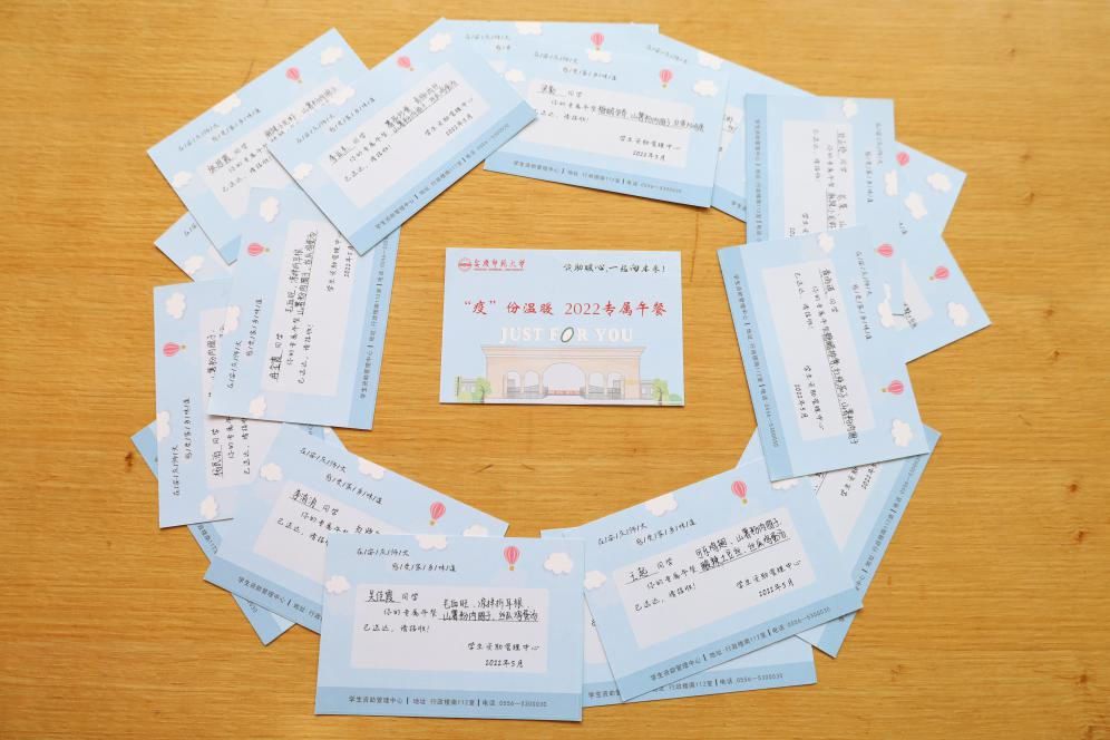 展现地域差异的家乡菜“毛血旺”、象征安庆本地特色的“山薯粉肉圆子”、标识“xxx同学,请查收专属午餐”的手写卡片……餐桌上整齐摆放着装满家乡特色菜肴的保温盒,这份“四菜一汤”的私人套餐陆续被派送到特定学生手中,吃到家乡菜的学生们纷纷在自己的社交平台上表示“太暖心”。