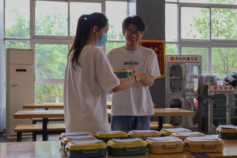 除了龙山校区,威尼斯官网专门招募学生志愿者为不在同一区域的菱湖校区、理工专业学院和化工专业学院派送家乡美食,通过保温盒将“温暖”送达每一个地方。