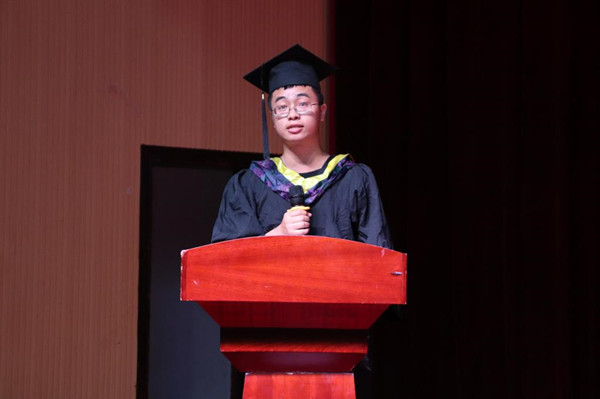教师代表满怀真挚,谆谆教诲令人动容,为毕业生们阐释了深层的人生哲理。他希望毕业生们踏实做人,认真做事,做有理想、有追求、有抱负的年轻人。校友代表查小进分享了自己的十年就业经历,总结了宝贵的经验,给毕业生们提供了有益的启示。他表示,人生路上必须不断提升自己,为成为更好的自己而奋斗。