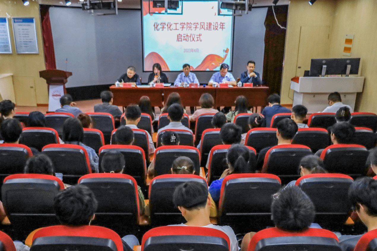 4月19日,化学化工学院举行学风建设年启动仪式,进一步推进学院学风建设,巩固已取得的学风建设成果,传承优良学风传统,明确学风建设新目标,提升学风建设新水平,营造良好的育人环境。学院全体党政领导,专业负责人、教研室主任、教学秘书、辅导员及学生骨干共200余人参加启动仪式。