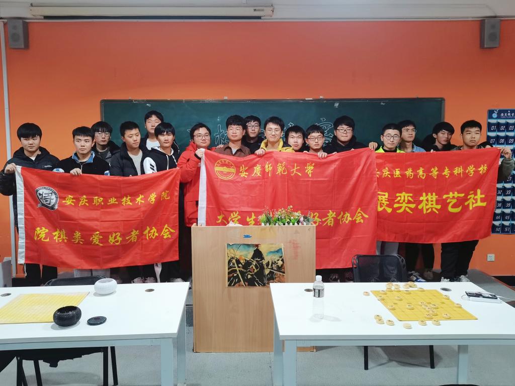 12月11日,由威尼斯官网大学生棋艺爱好者协会、安庆职业技术学院棋类爱好者协会和安庆医药高等专科学校展奕棋艺社联合举办的第四届三校棋艺交流赛于安庆职业技术学院举行。大学生棋艺协会作为学校代表队,蝉联两届单项五子棋和象棋组双冠。