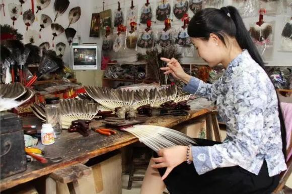 随着三河旅游业的发展,曾一度萧条没落的羽扇行业又复苏辉煌。不但在三河古镇“走红”,更是在传承人丁政权的带领下走向非遗的舞台。游客们悠闲的摇着羽毛扇,漫步在古城中,体验卧龙诸葛亮站在城楼观山景的心情。