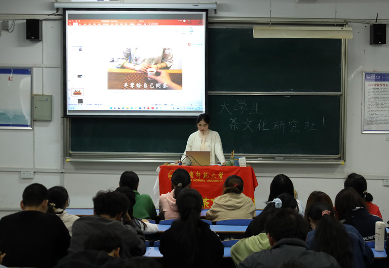 “我就是在专业学习的过程中,一步步被传统茶文化的魅力吸引,并将一时兴趣渐渐转为恒久的热爱。”“主讲人”的特殊身份,也让檀瑞产生了不一样的活动体验,回忆着自己的学习经历,檀瑞坦言,“看到这么多同学能来参加这次讲座,我也很开心。作为当代的‘茶人’,我会继续从自身做起,向身边的人传播更多的茶文化知识,让更多的人了解并爱上中国的茶文化。”